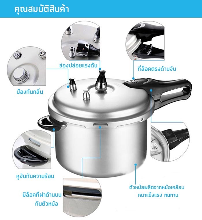 หม้อแรงดัน (Pressure Pot) จะช่วยลดเวลาในการตุ๋น นึ่งอาหารของคุณให้พร้อมทานได้อย่างรวดเร็ว ไม่ต้องเสียเวลาในการรอ ประหยัดทั้งเวลาและค่าใช้จ่าย